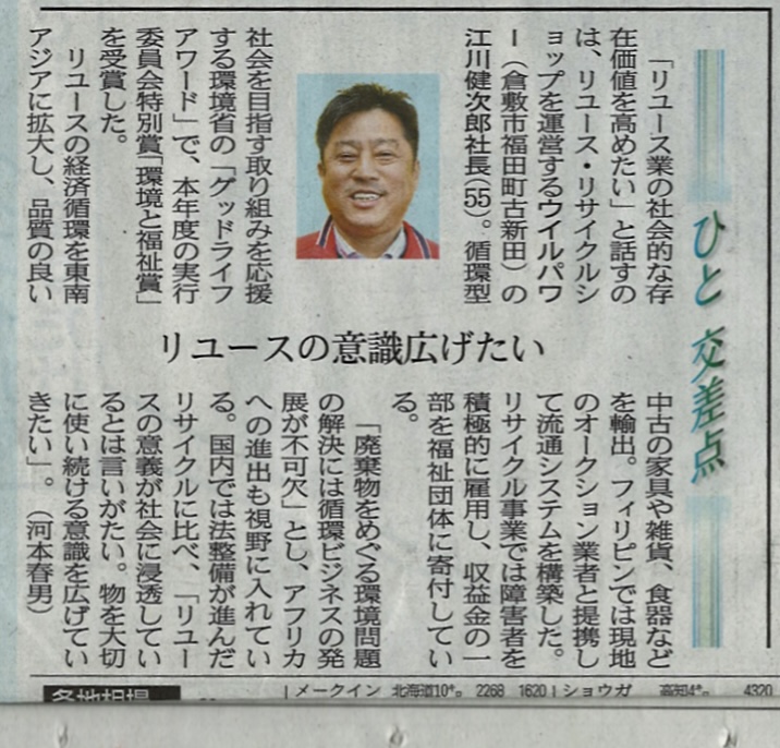 12月23日の山陽新聞に掲載されました!