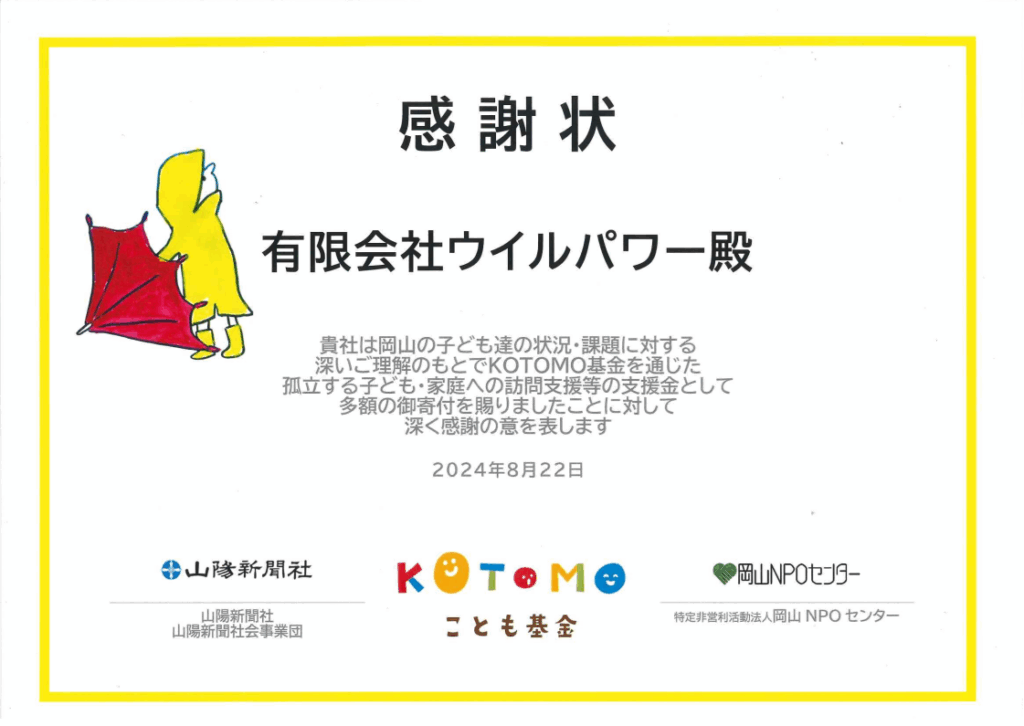 2025 岡山県障害者スポーツ協会より感謝状をいただきました!