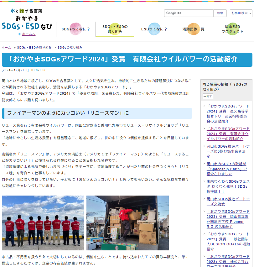 お知らせ:『おかやまSDGs・ESDなび』に掲載されました!